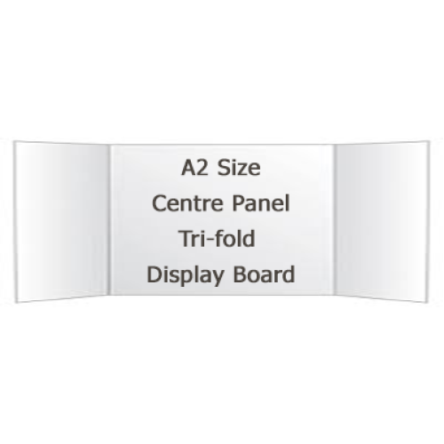 A Tri-fold Display Board with a single A2 Centre panel and two A3 panels that fold in to enable free standing.
