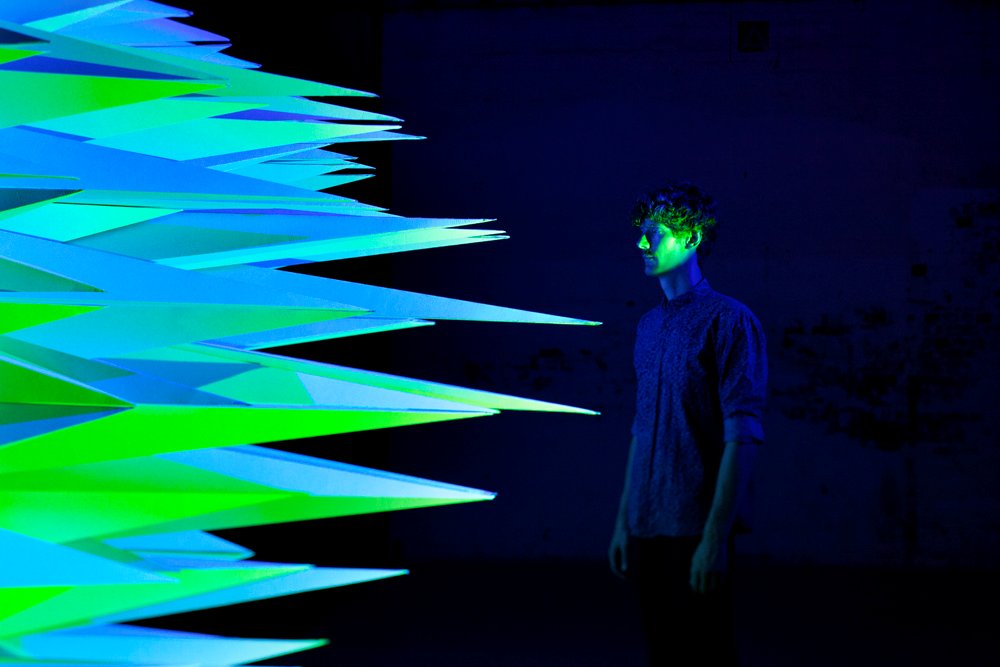 Primary has been specifically designed to create the right ratio of shadow which is then illuminated by the opposing light sources. Light and shadow are working together and through a 10 minute programmed light show, a real feeling of movement is created. A beautiful landscape of fragmented light that looks impressive on its own but very powerful with the perfectly shaped light. A soundscape completed the installation for a full immersive experience.