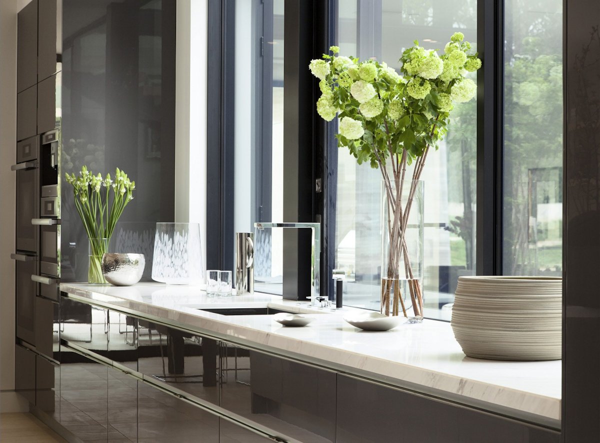 The house consists of master plus four bedrooms on the upper level with a family room, art room and gym. The lower level has formal living and dining rooms, family room, media and office plus associated secondary spaces. The house is finished in cool grey and cream limestone with light plaster and paint tones and bronze metal accents.