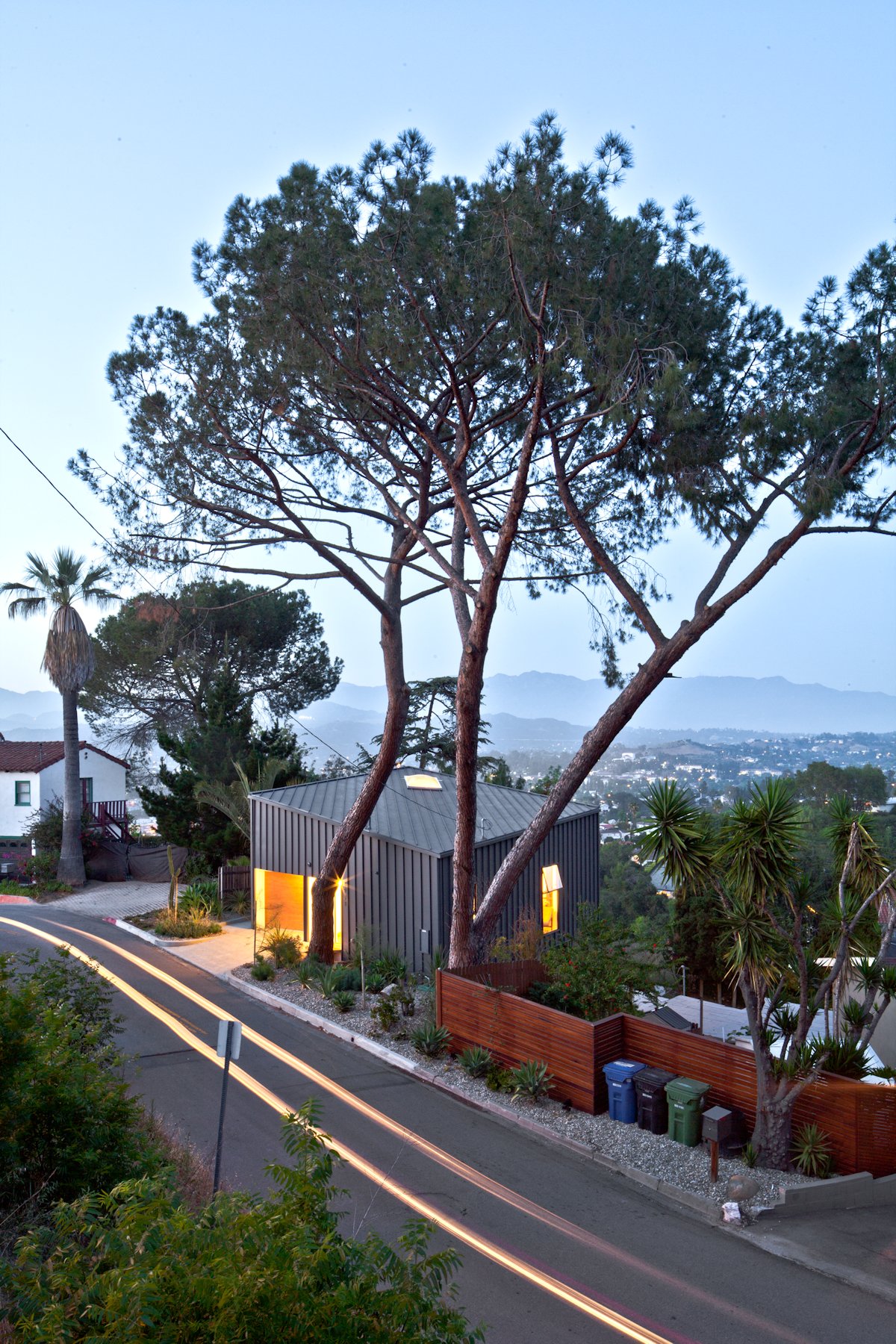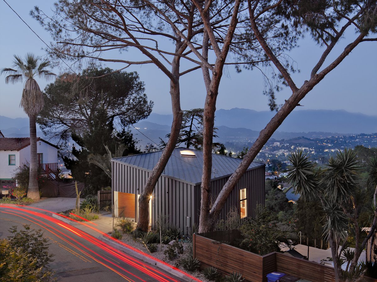 This small studio for drawing, painting, and sculpture acts as a visual device itself by bi-directionally framing its surroundings. To the southeast, a great amount of daylight enters through tilted glazing. To block direct sun, if desired, and to enable the modulation of light and climatic conditions, exterior screens are deployed. To the northwest, a system of frames is installed that enable bronze sculptures to be suspended in front of the glass and in direct sight of the working artist. In that spot, the bronze sculptures receive their natural patina while being staged as a motive of reflection and confrontation for the artist. The building features two separate levels, which serve different functions. The upper level is designed to be a workplace where most of the sketches and small watercolors are done, while on the lower level, medium-sized canvases and small sculptures will be produced. The semi-industrial character of the project stems from the reference to the typology of the shed roof factory. Here, this typology is being reduced to its simplest case — a single box with a single skylight. The use of raw and untreated materials contributes to the character of a workshop. The façade panels are made …
