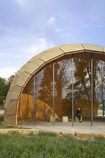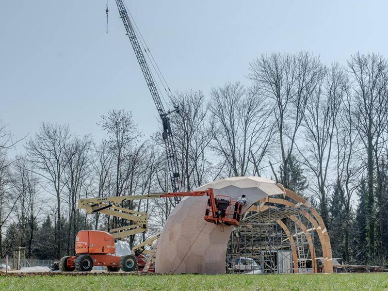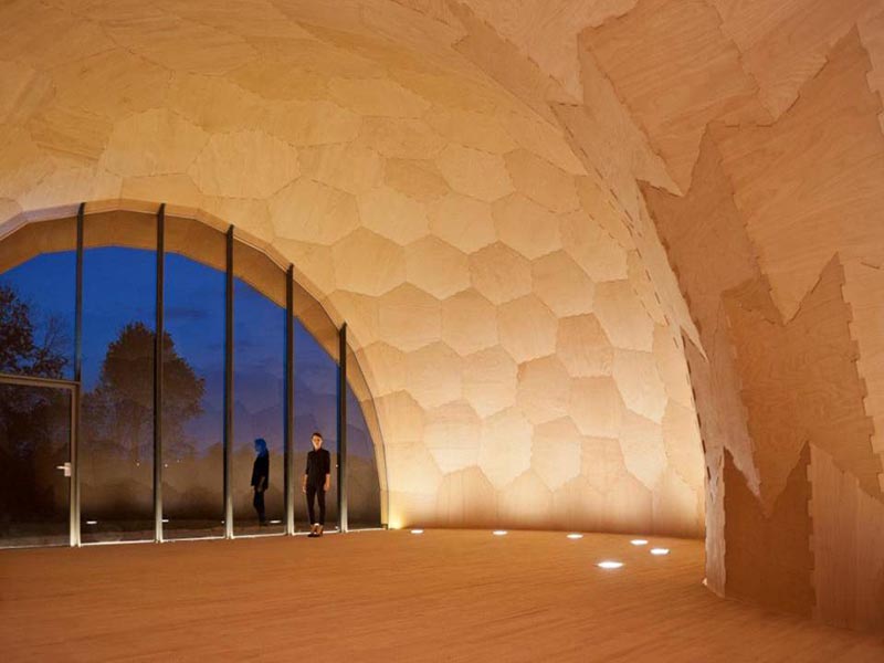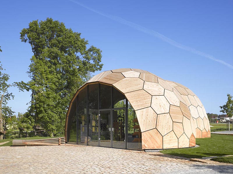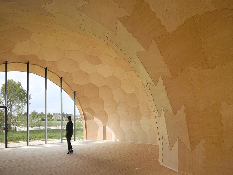 The Institute for Computational Design at the University of Stuttgart have completed the Landesgartenschau Exhibition Hall in Gmünd, Germany, that has been significantly designed and built using robotics.