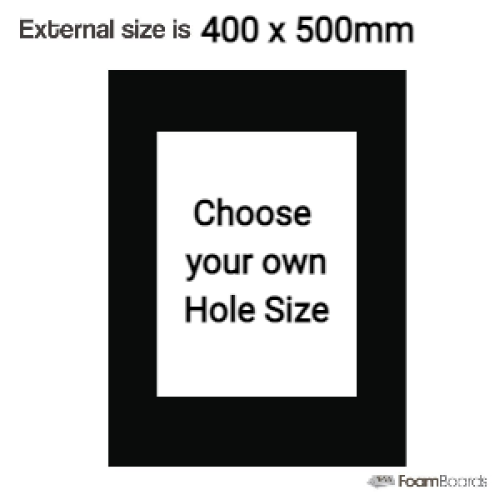 400 x 500 mm Black Mats cut to your opening size including backing and cello bags. Pack of 10.