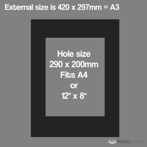 A3 Black Mats cut to fit A4 opening including backing and cello bags. Pack of 20.